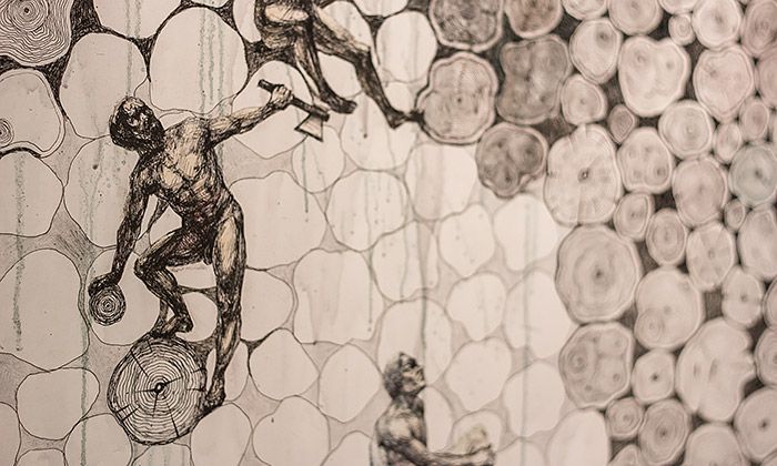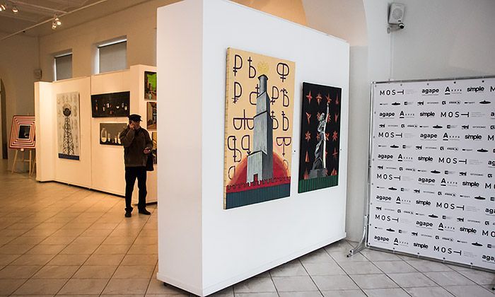 В десяти шагах от входа нас встречают живописные работы арт-группировки «ЗИП» остро политической — или социальной? — направленности. На небольшом выставочном пространстве первого этажа музея можно встретить и картины, кажется, уже виденные на пространствах «Типографии» или, по крайней мере, очень и очень напоминающие те выставки. Это работы Ивана Дубяги и Александра Чурсина, художников совершенно разных и от того еще более интересных — их работы всегда вызывают споры.